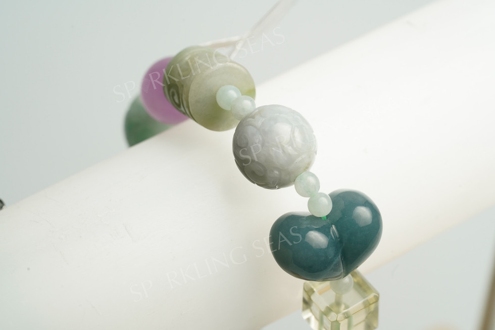 A-Grade Burma Green Jadeite Multishape Natural Stone Bracelet