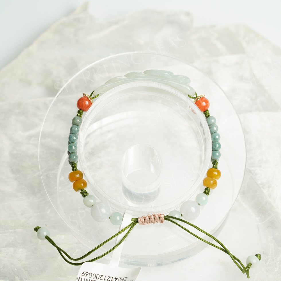 Green Jadeite Four Coin Bangle String Natural Stone Bracelet