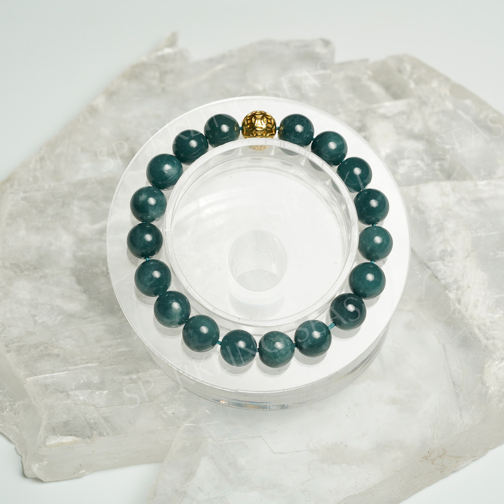 High Quality Blue Water Jadeite with Sand Gold Coin Charm Natural Stone Bracelet