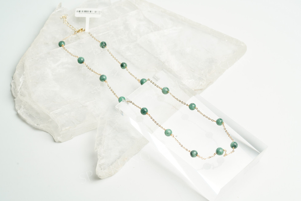 High Grade Burmese Jadeite Necklace in Silver Setting - Gold Vermail